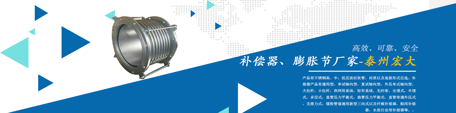 泰州市宏大機械設(shè)備有限公司是一個企業(yè)內(nèi)部管理嚴(yán)謹,工作作風(fēng)穩(wěn)健,職工素質(zhì)水平較高,經(jīng)濟實力雄厚,產(chǎn)品質(zhì)量放心,外部形象良好的企業(yè)。本公司專業(yè)從事補償器廠家,膨脹節(jié)廠家,膨脹節(jié)補償器,其中有不銹鋼高,中,低壓波紋軟管,材質(zhì)以及連接形式任選。補償器產(chǎn)品有通用型,單試軸向型,復(fù)試軸向型,外壓單式軸向型,大拉桿,小拉桿,熱網(wǎng)用系統(tǒng),矩形系統(tǒng),無約束,全埋式,半埋式,多層式,直管壓力平衡式,曲管壓力平衡…...